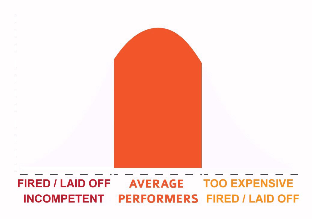 The third hurdle is reversion to the mean, usually understood to mean, by compensation. Mostly undocumented, but inferred by hundreds of experiments, are additional hiring rules which vary from company to company. We have concluded over the years that these rules have the effect, if not the intention, of selecting for candidates in the middle of the bell curve, roughly between -1 and +1 standard deviation from the mean.